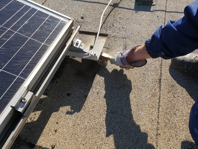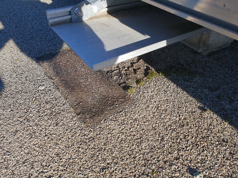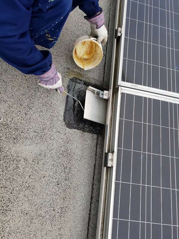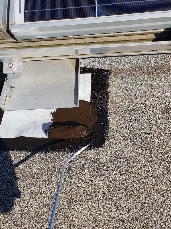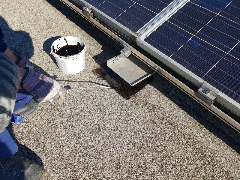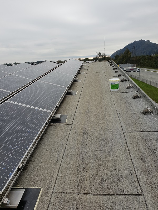Sanirala so se podnožja solarnih celic na bitumenski strehi s posipom. Zaradi manjšega naklona strehe, vremenskih vplivov na kritino (UV žarkov, visokih temperatur (posledično segrevanja in mehčanja bitumenske) ter na drugi strani nizkih temperatur (krčenje in togost materiala)) ter premikanja sončnih celic (abrazija kritine) je na strehi pod nogicami sončnih celic prišlo do poškodb stare bitumenske kritine s posipom. Sanacije so se lotili tako, da so najprej očistili podlago, nanesli Köster Bitumenski Prajmer in Köster KBE Tekočo folijo v katerega prvi sveži sloj se je vgradil Köster Superflis. S tem je bil zagotovljen dober oprijem z obstoječo bitumensko podlago s posipom in dosežena vodotesnost. Ker pa sama Köster KBE Tekoča folija ni UV obstojna in je poleg tega premehka, da bi se zoperstavljala mehanski obremenitvi, katero sončne celice predstavljajo za podlago, se je površina nadalje mehansko zaščitila s Köster ECB folijo debeline 2.0 mm. Tako je površina vodotesna in mehansko zaščitena, poleg tega pa bo lahko prenašala premike in obremenitev, katero sončne celice predstavljajo za streho.