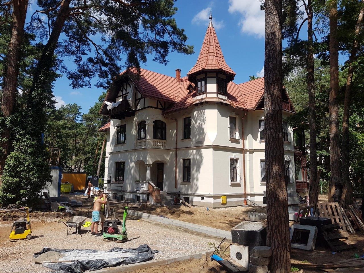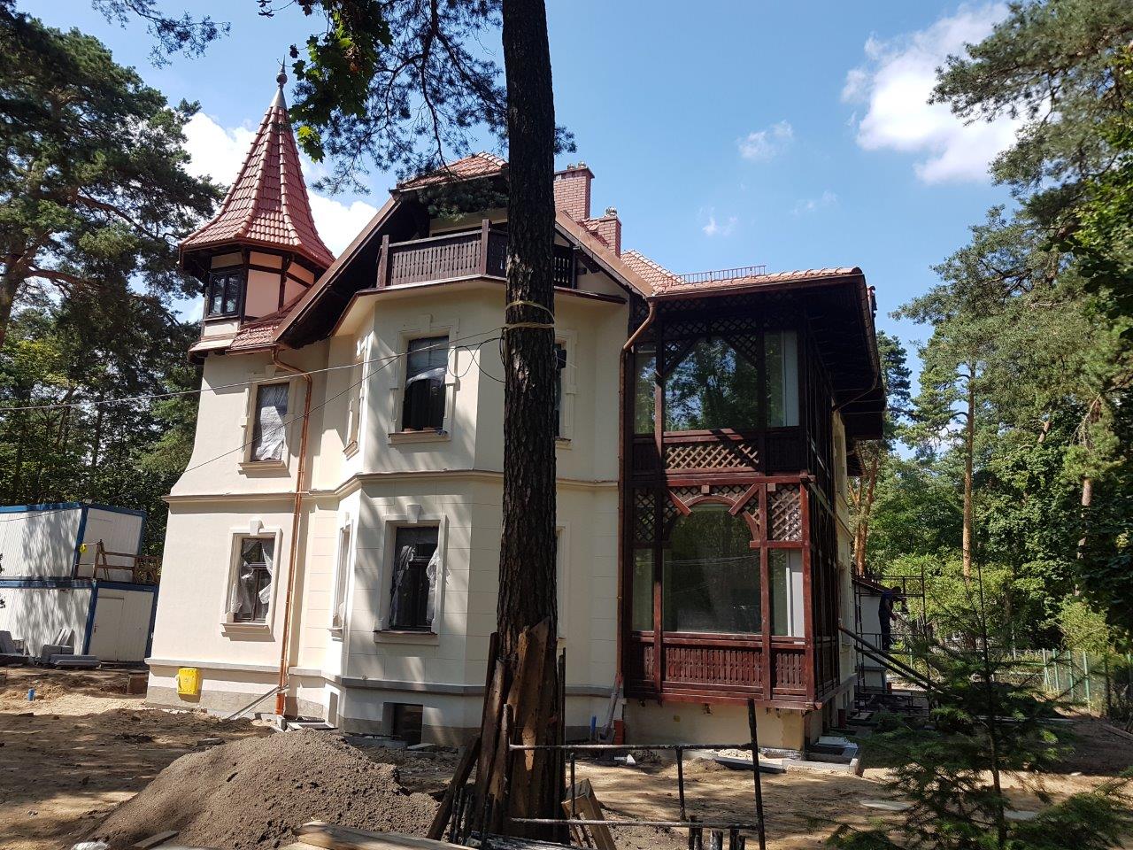 Willa "Gryf" w Konstancinie Jeziornej. Wykonanie hydroizolacji fundamentów przy użyciu masy bitumicznej KMB KOSTER Bikuthan 2K oraz odtworzenie izolacji poziomej w ścianach w technice iniekcji ciśnieniowej preparatem krzemianowo-estrowym KOSTER Mautrol 2K