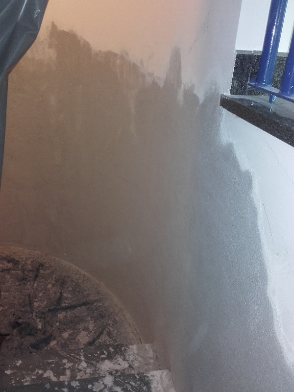 Iz sten so odstranili star omet in gips plošče, steno zbrusili in očistili, s Köster Crisin kremo naredili horizontalno bariero proti kapilarnemu dvigu vlage. Ko je bila narejena horizontalna bariera so preko naredili še tesnilni sistem s Köster Polysil TG 500 in Köster NB 1. Prav tako so rešili in pravilno zatesnili preboje, ki so bili dodaten vir zamakanja v objekt. Kjer je bilo potrebno so steno izravnali in lokalno popravili z izdelkoma Köster KB-Fix 5 in Köster Betomor Multi A. Ko je bila stena sanirana, so nanesli Köster sanirni omet in za fino zagladitev še Köster Fini omet. V prostorih, ki so bili obremenjeni s plesnijo pa so stene še dodatno prebarvali s Köster MF 1, mineralno barvo, katera preprečuje pojav in nastajanje plesni.