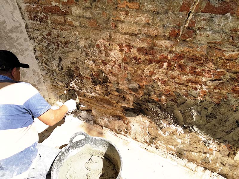 Restoration of masonry with KÖSTER Crisin 76. Substrate preparation with KÖSTER Polysil TG 500, surface finish with KÖSTER NB 1 Grey.